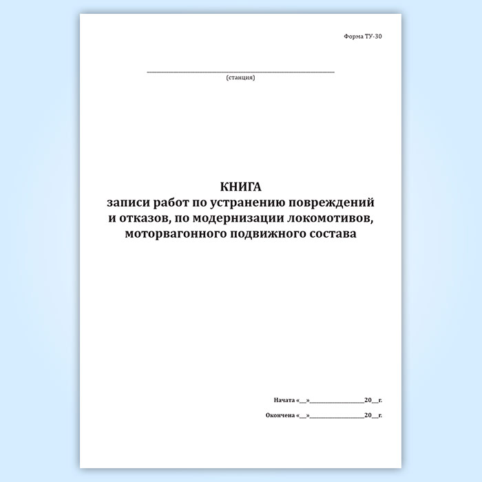 Книга записи работ по устранению повреждений и отказов, по модернизации локомотивов, моторвагонного подвижного состава (форма ТУ-30) в Альметьевске купить