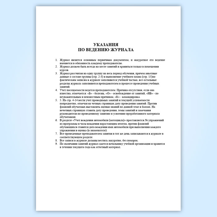 Журнал учета занятий по подготовке водителей транспортных средств категории «В» в Альметьевске купить