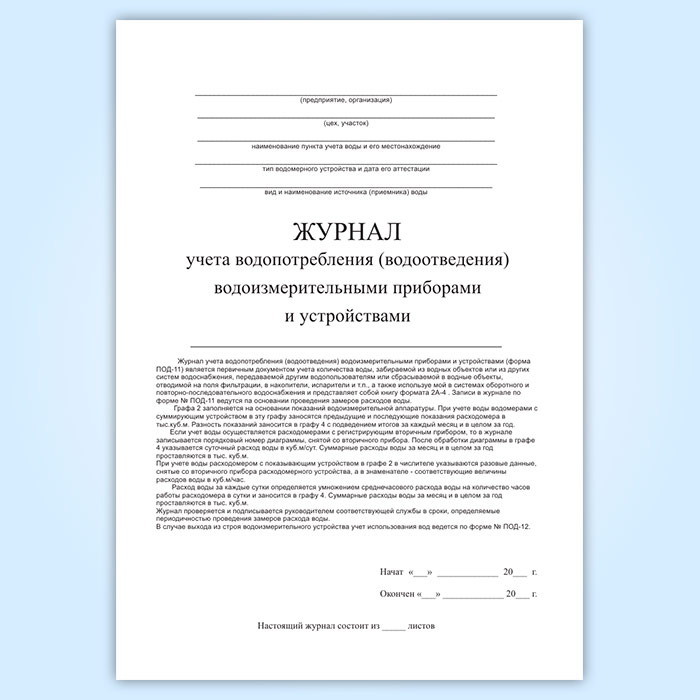 Журнал учета водопотребления (водоотведения) водоизмерительными приборами и устройствами (форма ПОД-11) в Альметьевске купить