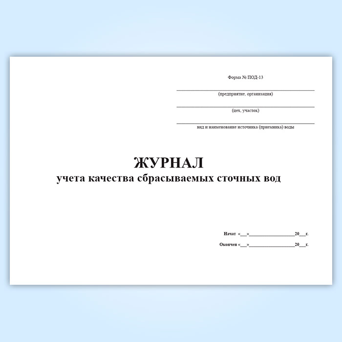 Журнал учета качества сбрасываемых сточных вод (форма ПОД-13) в Альметьевске купить