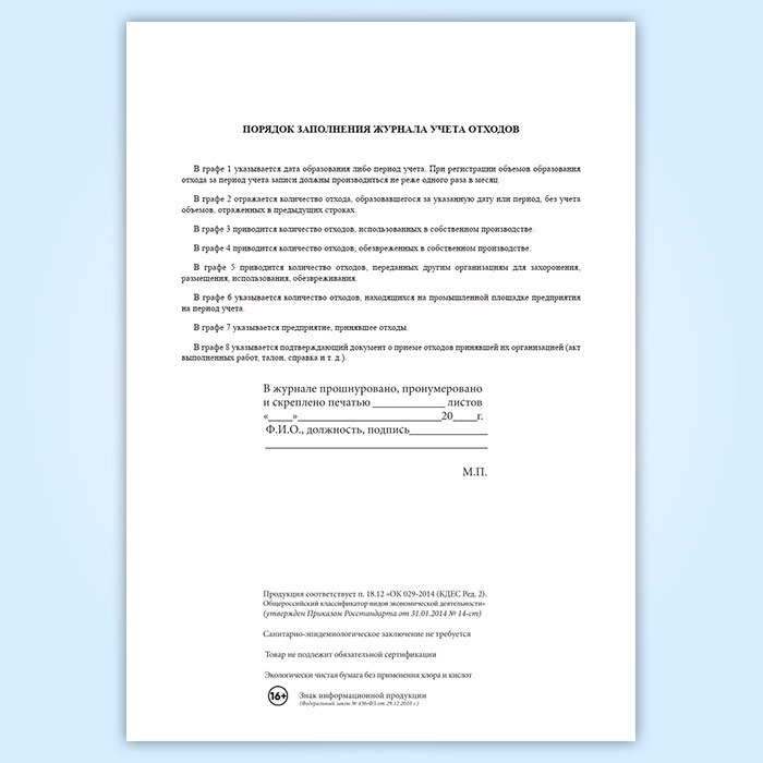 Журнал первичного учета отходов в Альметьевске купить
