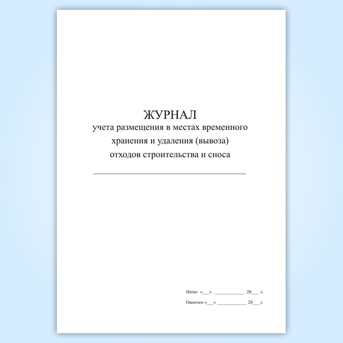 Журнал учета размещения в местах временного хранения и удаления (вывоза) отходов строительства и сноса в Альметьевске купить