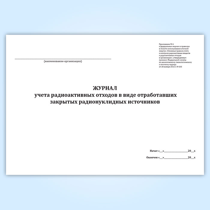 Журнал учета радиоактивных отходов в виде отработавших закрытых радионуклидных источников в Альметьевске купить
