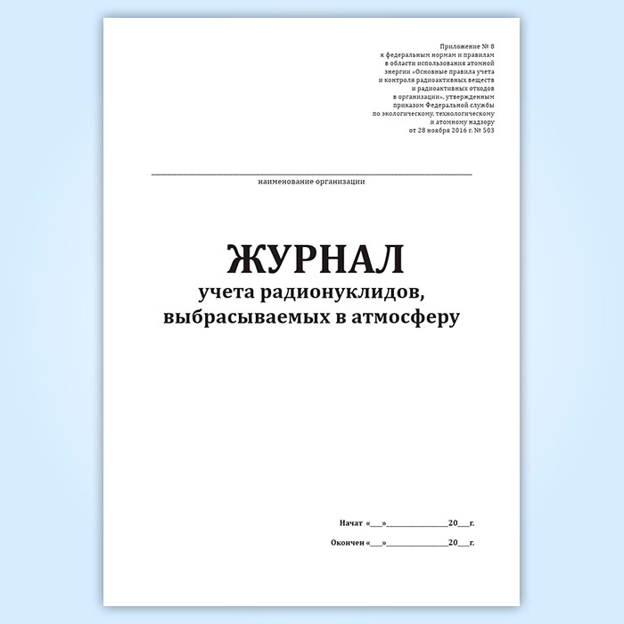 Журнал учета радионуклидов, выбрасываемых в атмосферу в Альметьевске купить