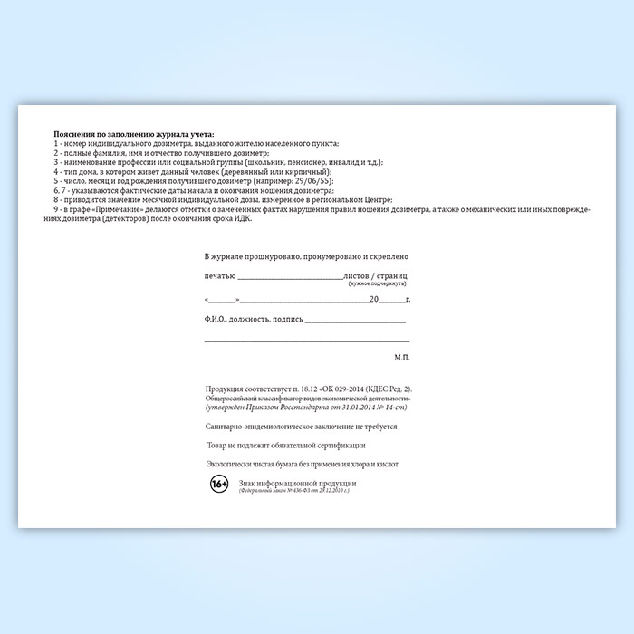 Журнал учета индивидуального дозиметрического контроля внешнего гамма-излучения в Альметьевске купить