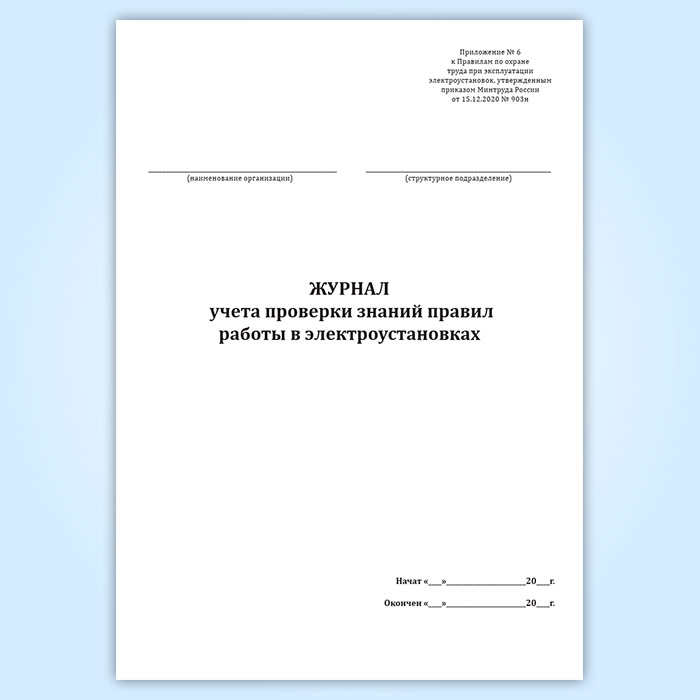 Журнал учета проверки знаний правил работы в электроустановках (Приложение 6) в Альметьевске купить