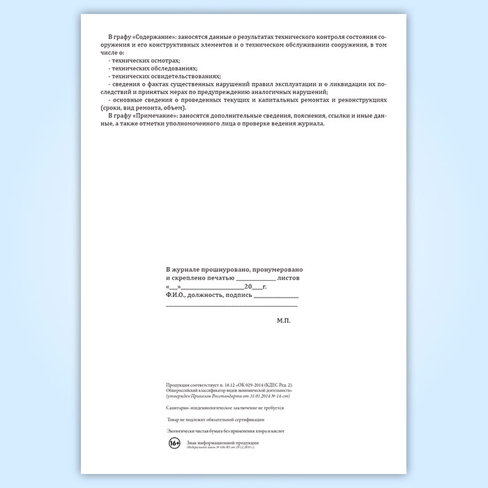 Технический журнал по эксплуатации гидротехнического сооружения в Альметьевске купить