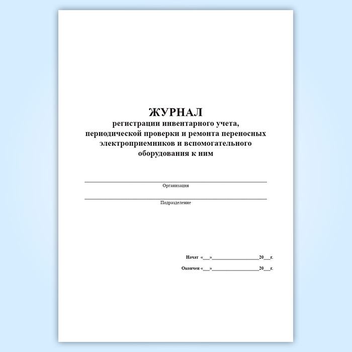 Журнал регистрации инвентарного учета, периодической проверки и ремонта переносных электроприемников и вспомогательного оборудования к ним в Альметьевске купить