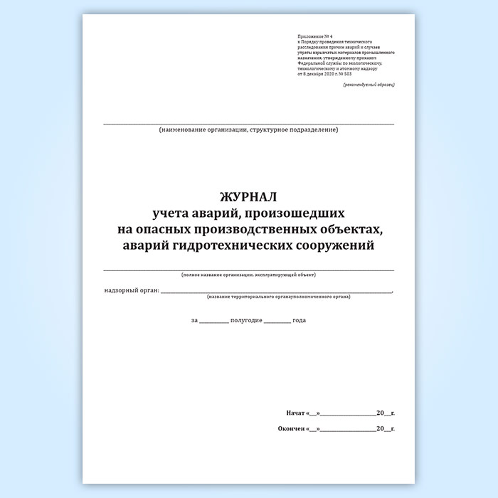 Журнал учета аварий, происшедших на опасных производственных объектах, объектах энергетики и гидросооружениях в Альметьевске купить