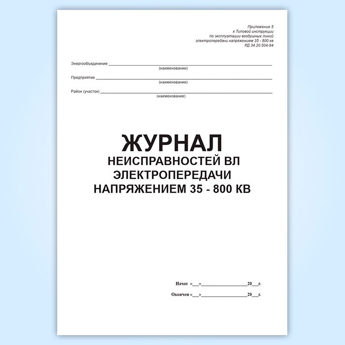 Журнал учета работ на ВЛ электропередачи напряжением 35-800 квВ в Альметьевске купить