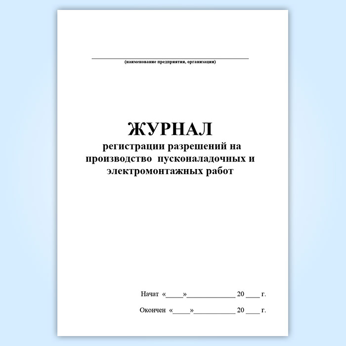 Журнал регистрации разрешений на производство пусконаладочных и электромонтажных работ в Альметьевске купить