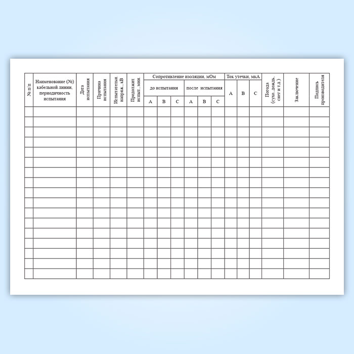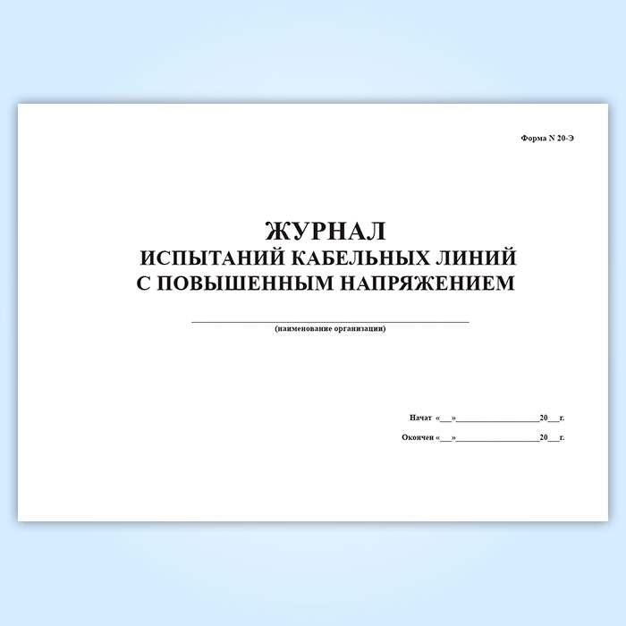 Журнал испытаний кабельных линий с повышенным напряжением (форма № 20-Э) в Альметьевске купить