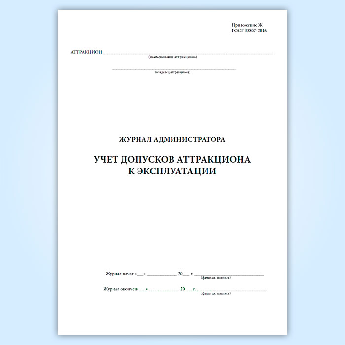 Журнал администратора. Учет допусков аттракциона к эксплуатации в Альметьевске купить