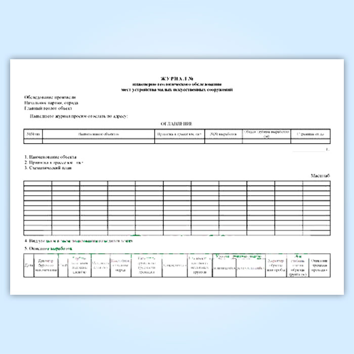 Журнал инженерно-геологического обследования мест устройства малых искусственных сооружений в Альметьевске купить