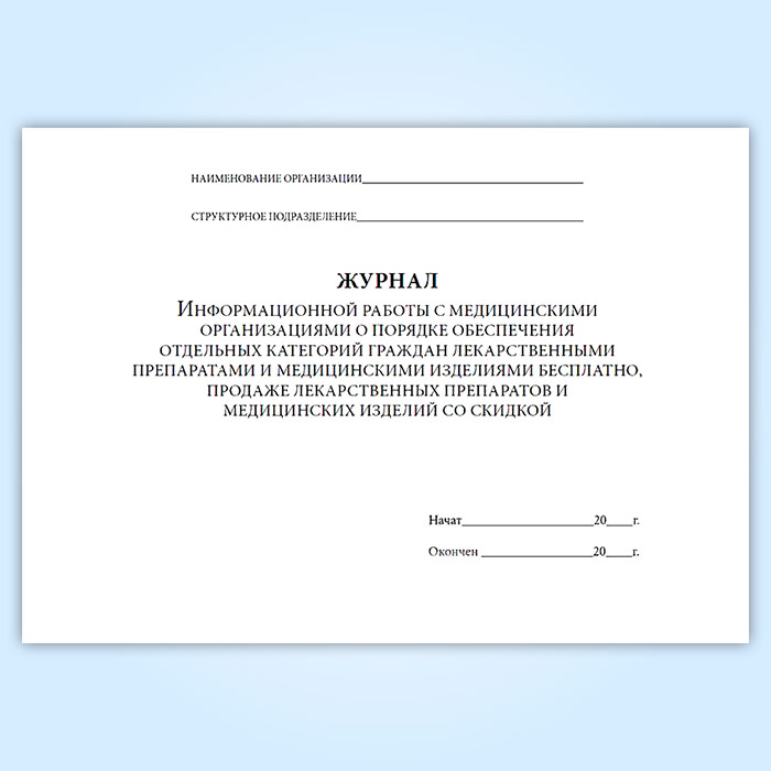 Журнал информационной работы с медицинскими организациями о порядке обеспечения отдельных категорий граждан лекарственными препаратами и медицинскими изделиями бесплатно, продаже лекарственных препаратов и медицинских изделий со скидкой в Альметьевске купить