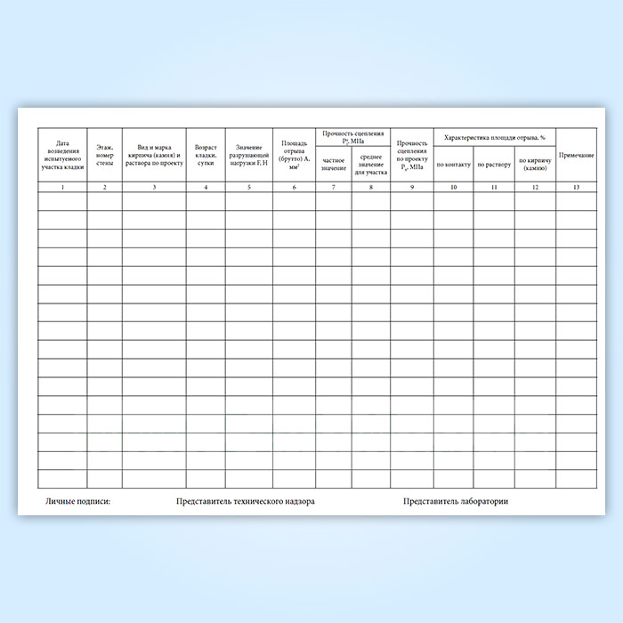 Журнал контрольных испытаний прочности сцепления в кладке на строительной площадке в Альметьевске купить
