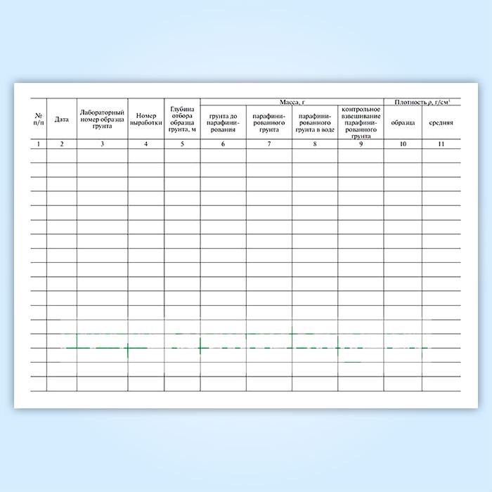 Журнал определения плотности грунта методом взвешивания в воде парафинированных образцов в Альметьевске купить