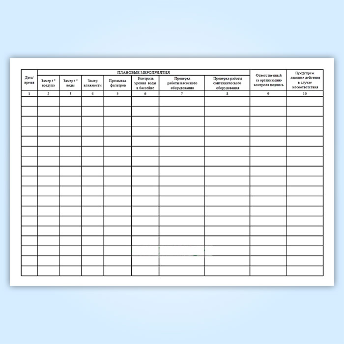 Журнал плановых мероприятий по бассейну в Альметьевске купить