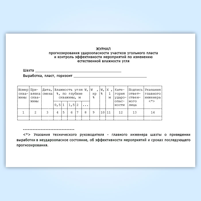 Журнал прогнозирования удароопасности участков угольного пласта и контроля эффективности мероприятий по изменению естественной влажности угля в Альметьевске купить
