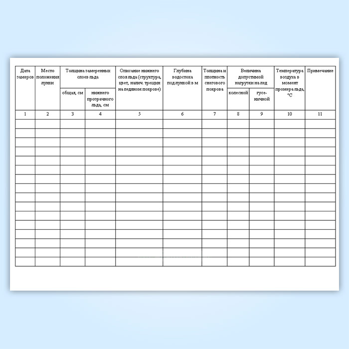 Журнал промеров толщины льда и определения грузоподъемности ледяного покрова в Альметьевске купить