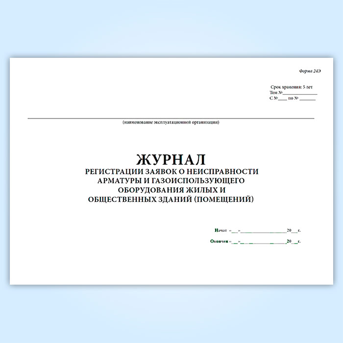 Журнал регистрации заявок о неисправности арматуры и газоиспользующего оборудования жилых и общественных зданий (помещений) (форма 24Э) в Альметьевске купить