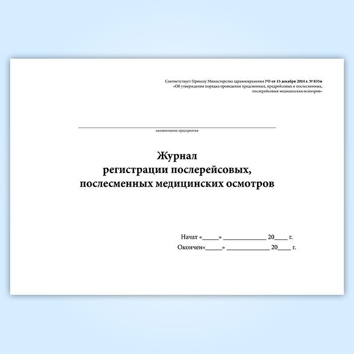 Журнал регистрации послерейсовых, послесменных медицинских осмотров в Альметьевске купить