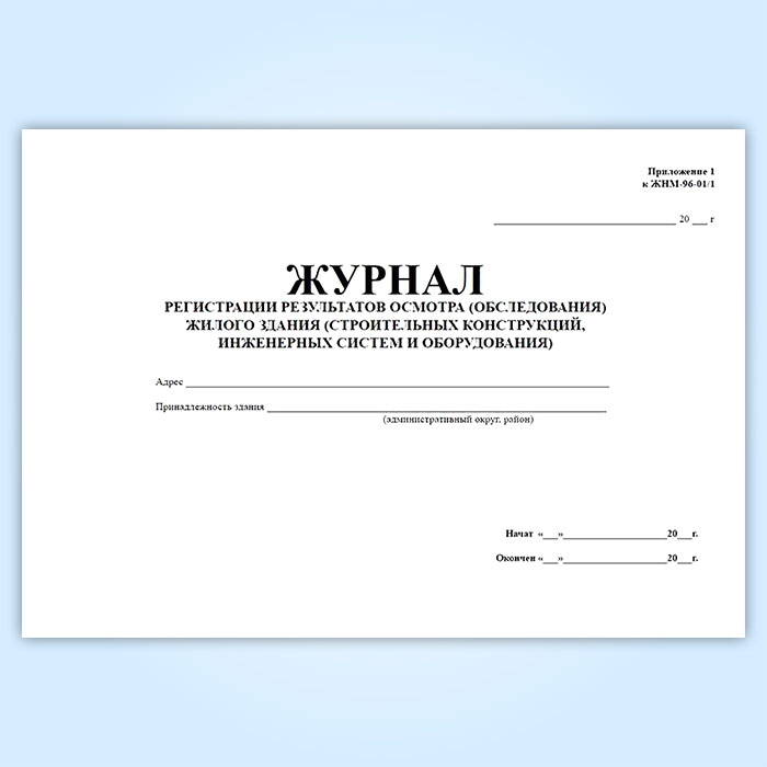 Журнал регистрации результатов осмотра (обследования) жилого здания (строительных конструкций, инженерных систем и оборудования). (Приложение к форме ЖНМ-96-01/1) в Альметьевске купить