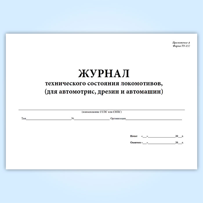 Журнал технического состояния локомотивов (для автомотрис, дрезин и автомашин) (форма ТУ-152) в Альметьевске купить