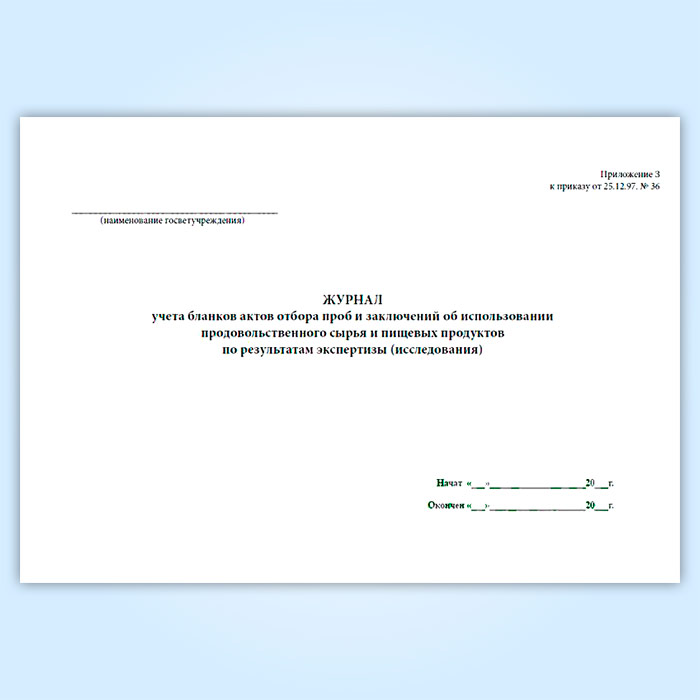 Журнал учета бланков отбора проб и заключений об использовании продовольственного сырья и пищевых продуктов в Альметьевске купить