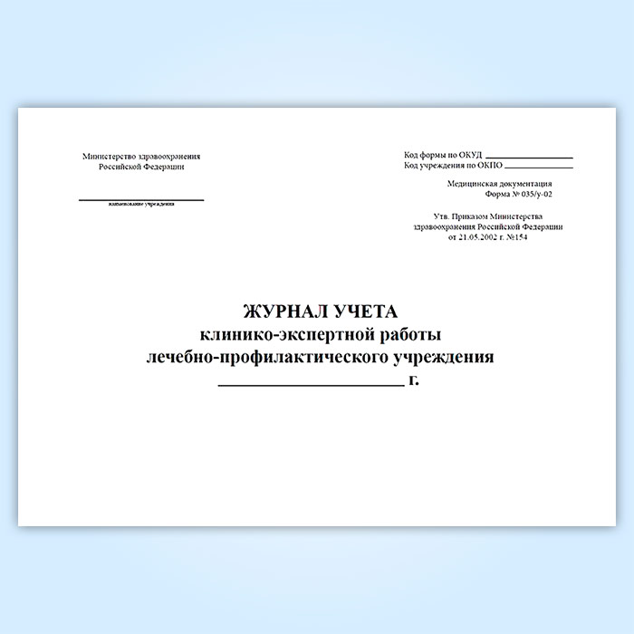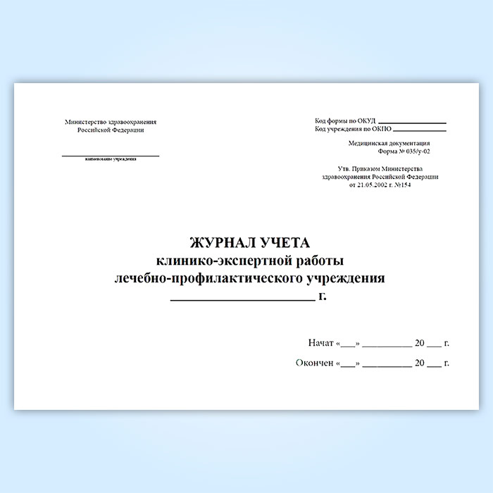 Журнал учета клинико-экспертной работы лечебно-профилактического учреждения (форма № 035/у-02) в Альметьевске купить