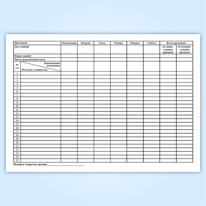 Журнал учета посещения занятий студентами в Альметьевске купить