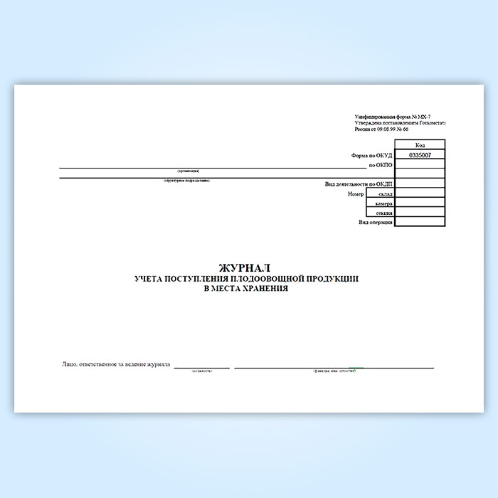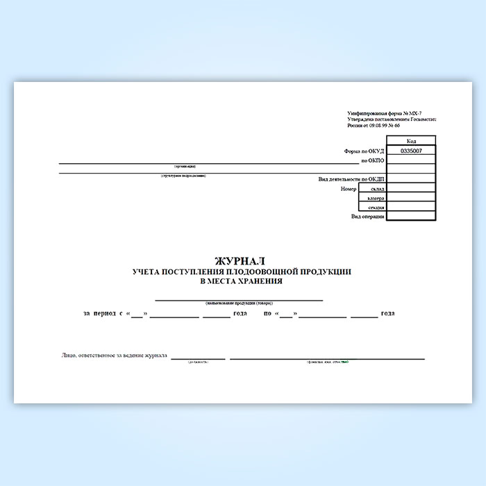 Журнал учета поступления плодоовощной продукции в места хранения (форма МХ-7) в Альметьевске купить