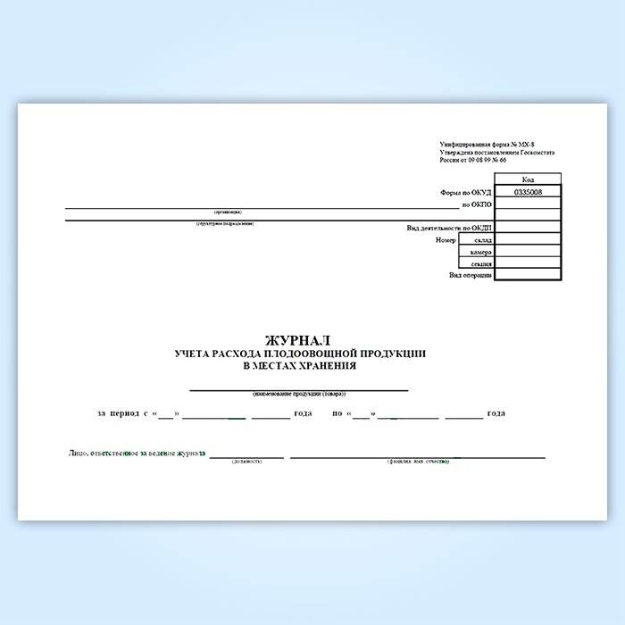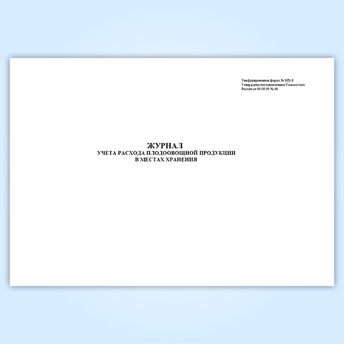 Журнал учета расхода плодоовощной продукции в местах хранения (форма МХ-8) в Альметьевске купить