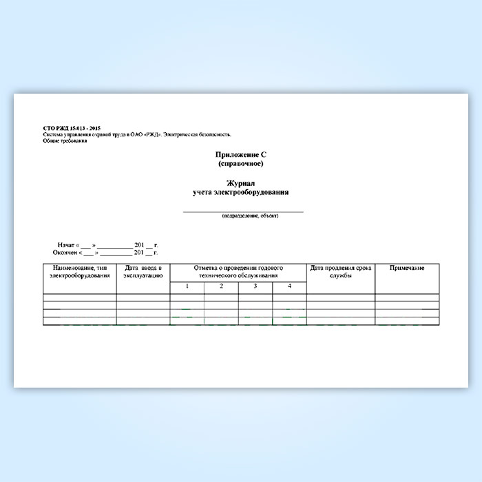 Журнал учета электрооборудования (СТО РЖД 15.013-2015) в Альметьевске купить