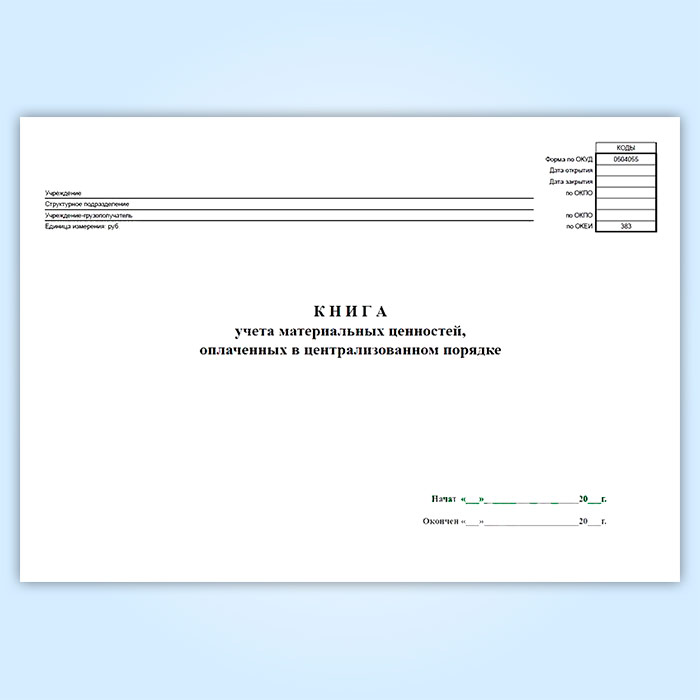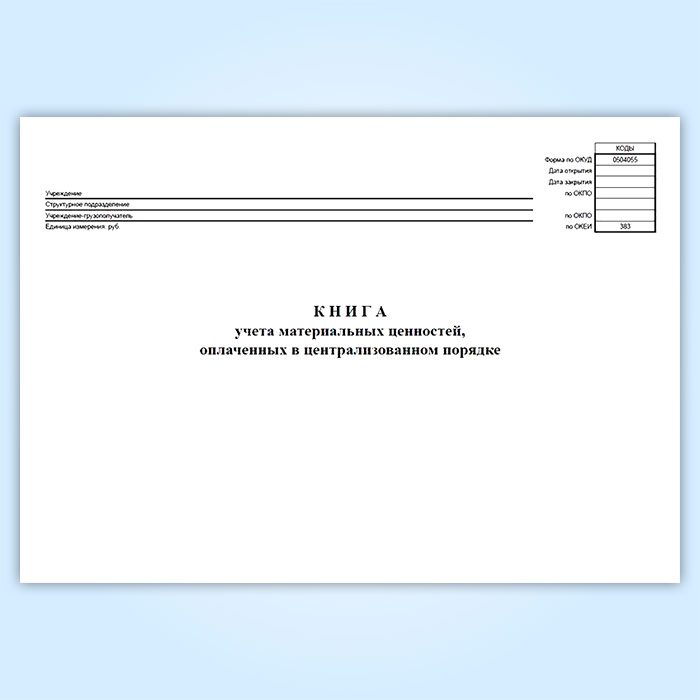 Книга учета материальных ценностей, оплаченных в централизованном порядке (код формы 0504055) в Альметьевске купить