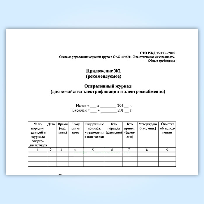 Оперативный журнал (для хозяйства электрификации и электроснабжения) (СТО РЖД 15.013-2015) в Альметьевске купить