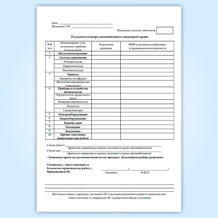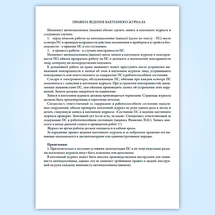 Вахтенный журнал машиниста автоподъемника (вышки) в Альметьевске купить