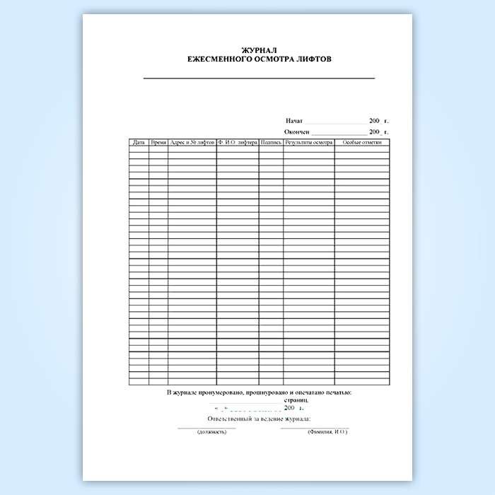Журнал ежемесячных осмотров лифтов в Альметьевске купить