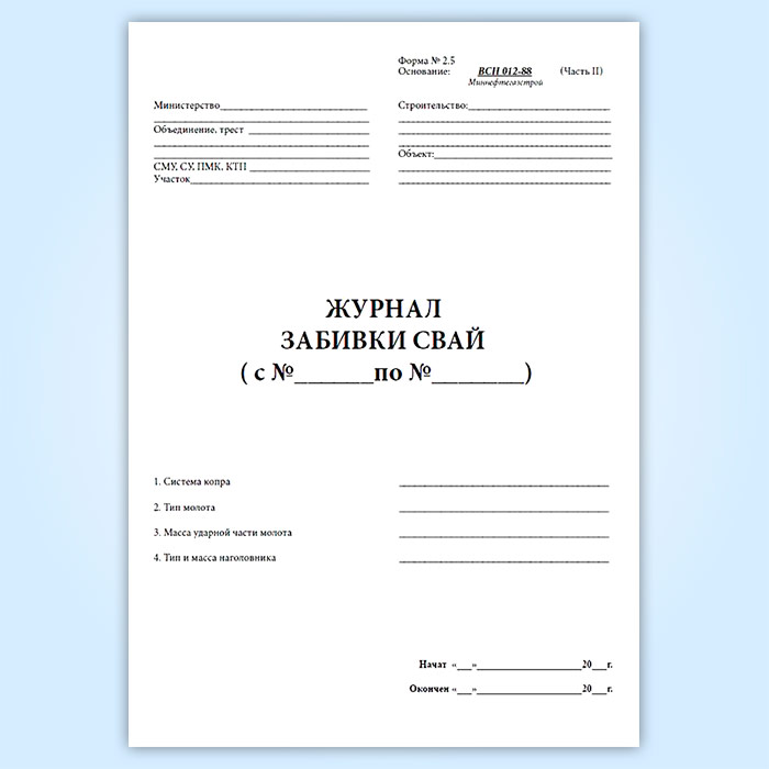 Журнал забивки свай (форма 2.5) в Альметьевске купить