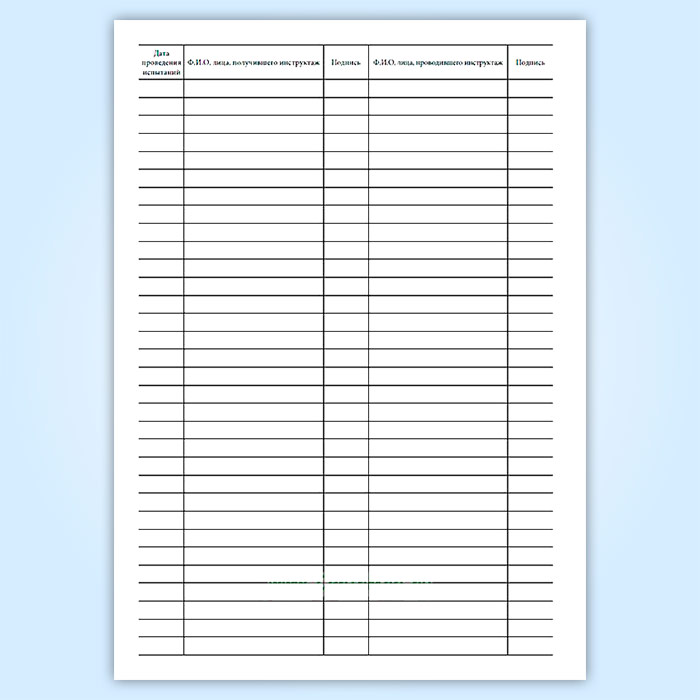 Журнал инструктажа по технике безопасности при проведении испытаний специальной защитной одежды пожарного в Альметьевске купить