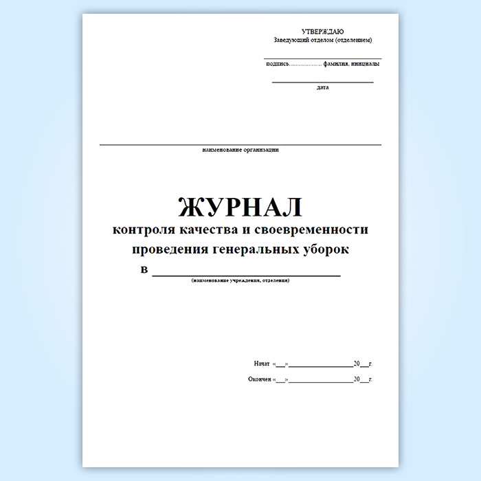 Журнал контроля качества и своевременности проведения генеральных уборок в Альметьевске купить
