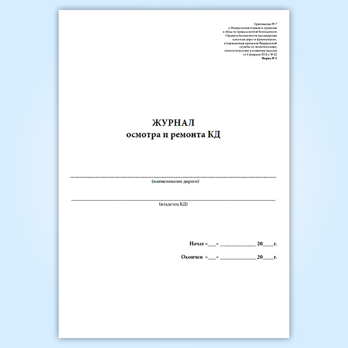 Журнал осмотра и ремонта канатной дороги. Несущий канат (форма № 1) в Альметьевске купить