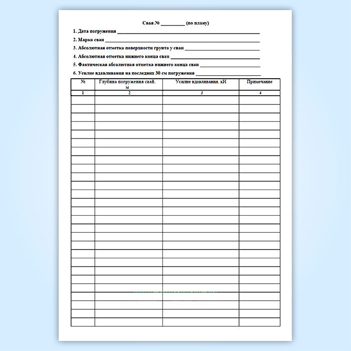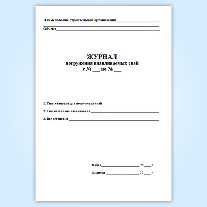 Журнал погружения вдавливаемых свай в Альметьевске купить