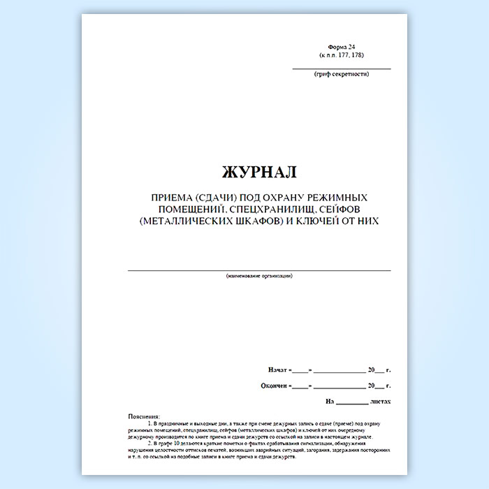 Журнал приема (сдачи) под охрану режимных помещений, спецхранилищ, сейфов (металлических шкафов) и ключей от них в Альметьевске купить