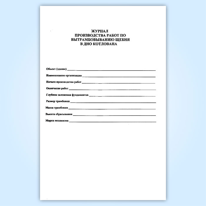 Журнал производства работ по вытрамбовыванию щебня в дно котлована в Альметьевске купить