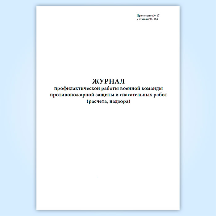 Журнал профилактической работы военной команды противопожарной защиты и спасательных работ (расчета, надзора) в Альметьевске купить