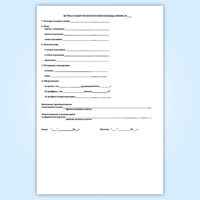 Журнал работ по опусканию колодца опоры в Альметьевске купить