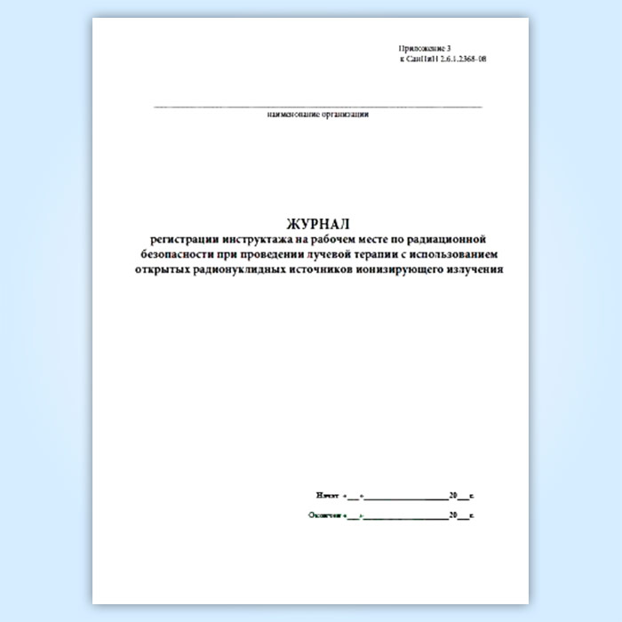 Журнал регистрации инструктажа на рабочем месте по радиационной безопасности при проведении лучевой терапии с использованием открытых радионуклиидных источников ионизирующего излучения в Альметьевске купить
