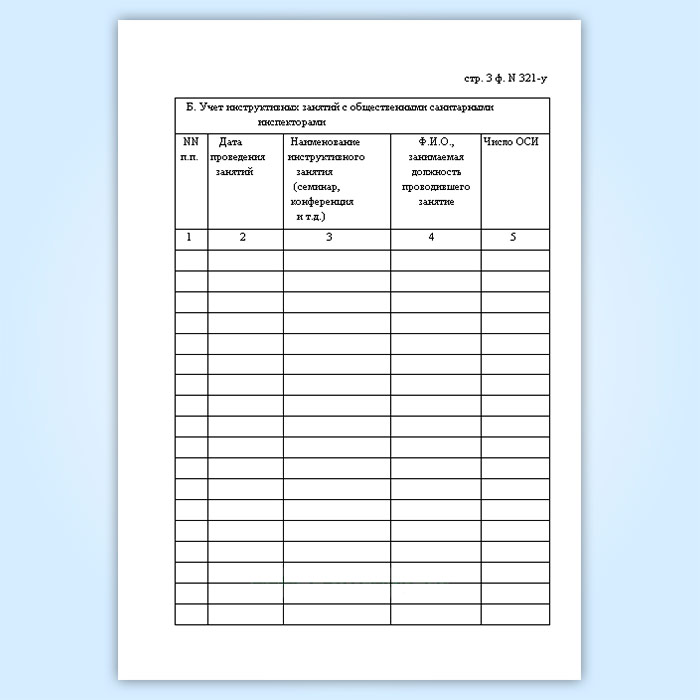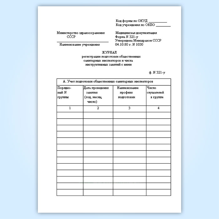 Журнал регистрации подготовки общественных санитарных инспекторов и числа инструктивных занятий с ними (форма № 321-у) в Альметьевске купить