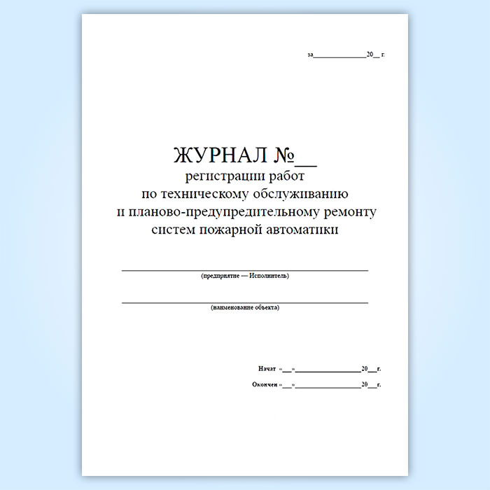 Журнал регистрации работ по техническому обслуживанию и планово-предупредительному ремонту систем пожарной автоматики в Альметьевске купить